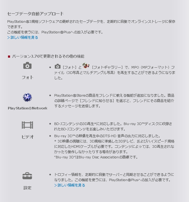 2011年6月7日から、PS3®の本体機能を更新するアップデートを開始しました。今回のアップデートでは、システムソフトウェアのバージョンが 3.65になり、次の機能が更新されます。